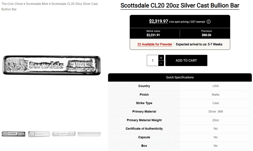 Result: premiums blow out fast, especially on “popular” SKUs like 1oz rounds.