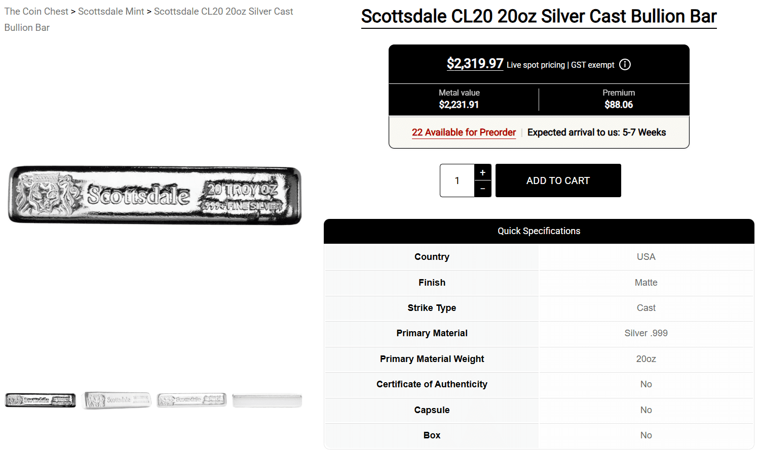 Premium per oz: $4.40 over spot