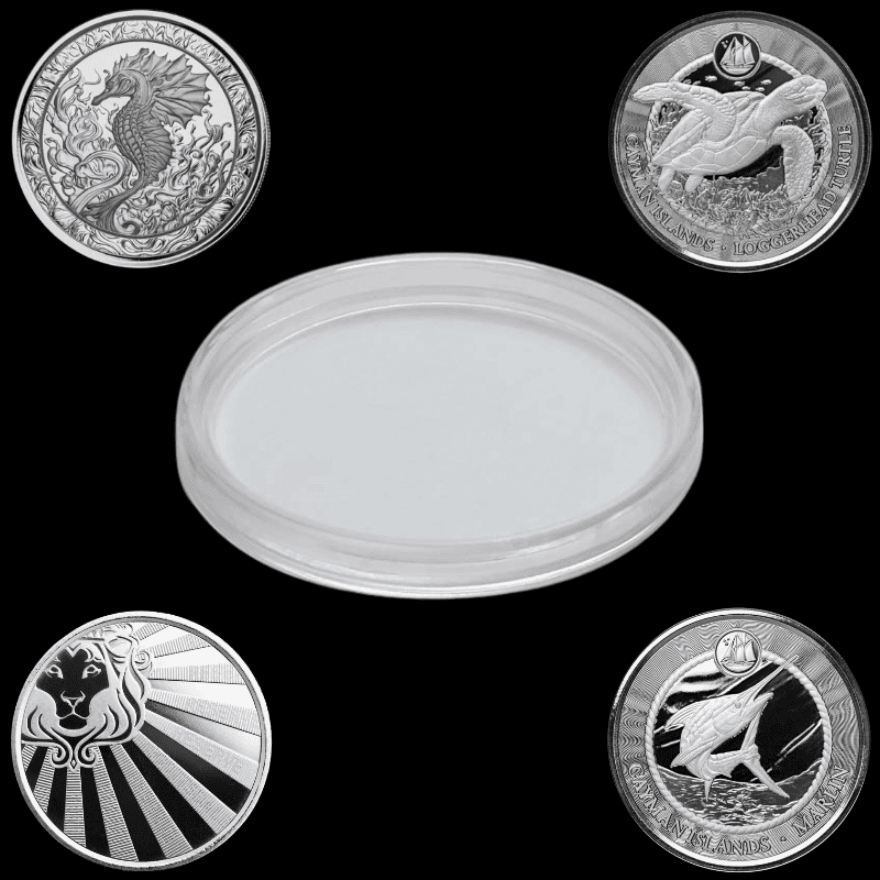 These capsules are perfect fit for any 39.00mm diameter rounds. These capsules also suit 38.80mm diameter coins such as Scottsdale Mint rounds like the Reserve round, the marlin and so on. Experience the perfection of a perfect fit, no rattle and perfect storage. Please note, we are only selling the capsules at this price.