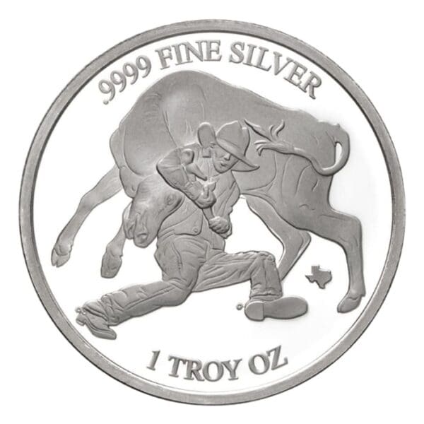 Capture the excitement and strength of rodeo with this 2024 1 oz Texas Mint Steer Wrestling .9999 Silver Round. Each round features a dynamic scene of a cowboy mid-action, wrestling a steer in true Texan style—a bold tribute to courage and determination. With gleaming .9999 fine silver, this round appeals to collectors and investors alike, while the official Texas Mint mark and the classic lone star speak to authentic craftsmanship and Texas pride.
