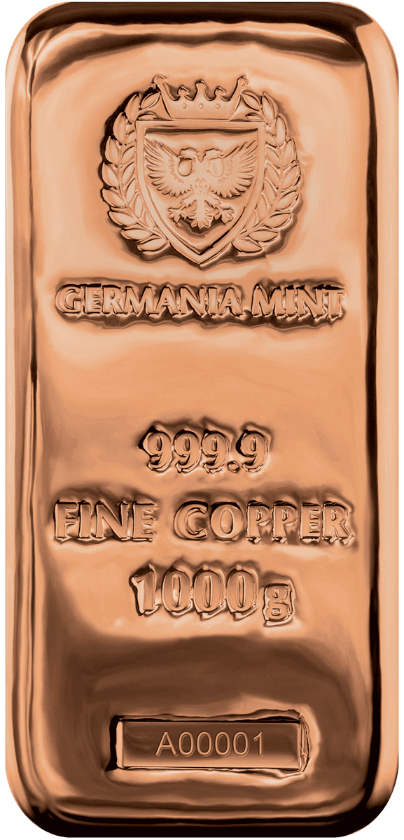 Breathe new life into your collection with the Germania Mint Copper Cast Bar 1kg, expertly crafted for discerning collectors and investors. This solid copper bar, weighing a substantial 1 kilogram, showcases the renowned quality of the Germania Mint, highlighted by a classic, rustic cast finish and clearly struck hallmarks. Its warm, rich hue and robust feel make it a standout piece, whether displayed or securely stored.