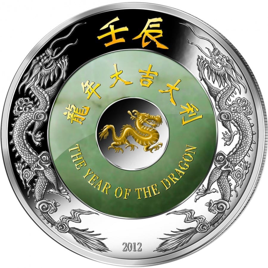 Experience the majesty and artistry of the 2012 Lunar Dragon two ounce silver coin, featuring an intricate jade inlay and a dazzling gilded proof finish. Inspired by traditional Asian mythology, this collector favourite boasts a detailed dragon design coiled protectively around a genuine jade insert, symbolising power and prosperity. The fine proof quality, precious metal content and low mintage make this an exclusive piece for both seasoned collectors and those looking to add a touch of elegance to their collection.