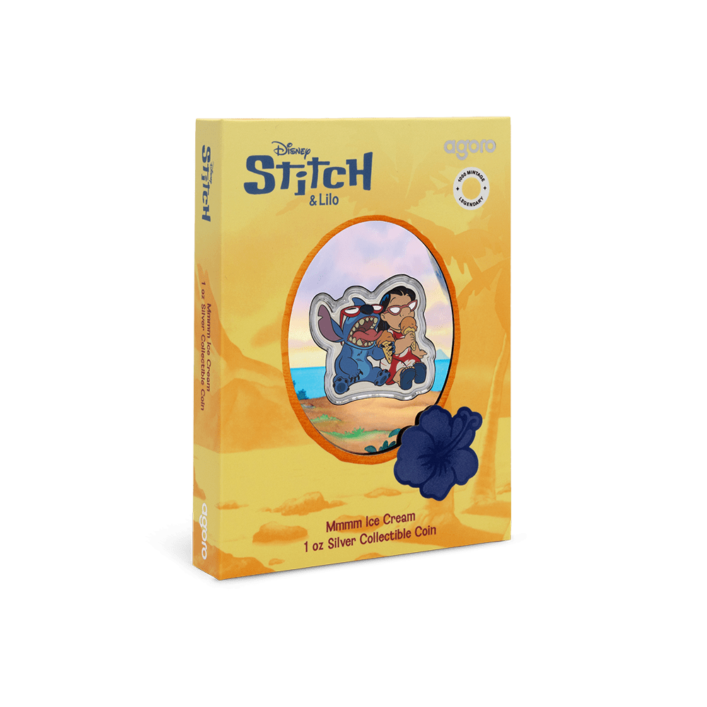 Bring a piece of the islands into your collection with this joyful $2 silver proof, featuring Disney’s Stitch and Lilo in radiant colour, sharing ice cream in true “ohana” style. Struck from 1oz of 999 pure silver and finished to high proof standard, this legal tender coin from Niue pops with vibrant red and blue hues, highlighted by Stitch’s polished mirror sunglasses. With only 626 coins minted worldwide to honour June 26, Stitch Day, this officially licensed collectible is a treasure for both Disney fans and silver coin collectors.