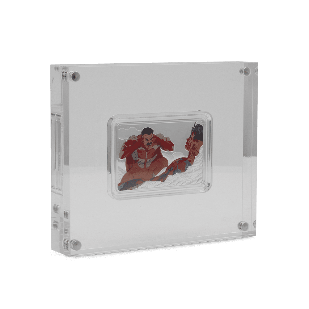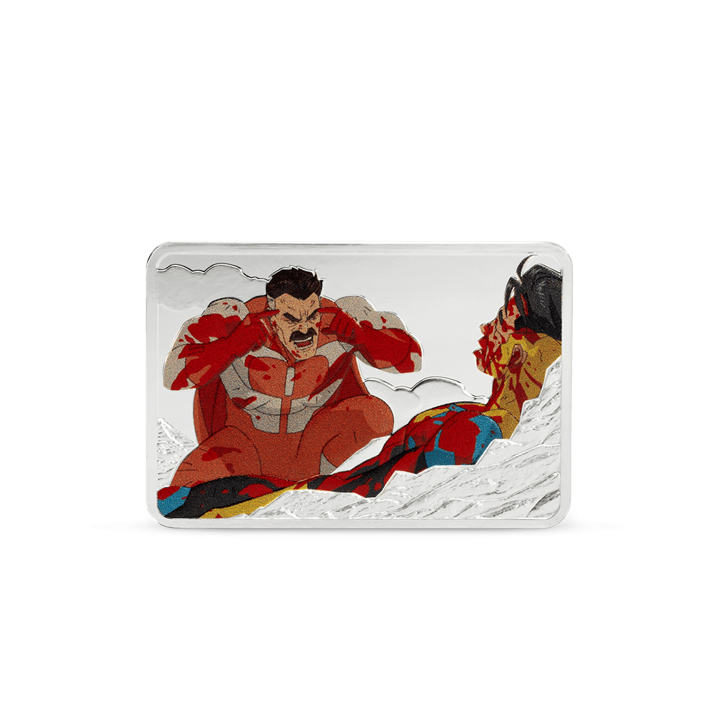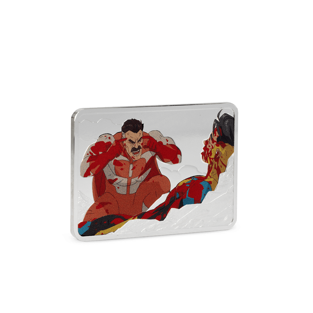 Dive into the most pivotal moment of *Invincible* with this 2025 $2 Niue legal tender silver coin, capturing Omni-Man’s brutal revelation from episode eight. Struck from 1oz of 999 pure silver and officially licensed, it immortalises the bloodied mountain confrontation between father and son in vibrant colour and precision engraving.