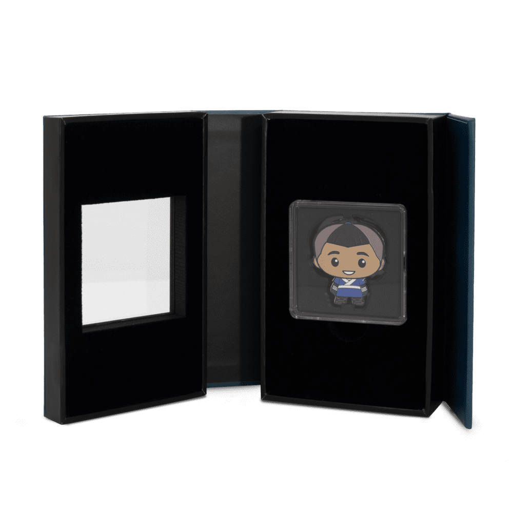 The Coin Chest invites you to enjoy a touch of nostalgia with this officially licensed Avatar: The Last Airbender collectable. Struck from 1oz of 999 pure silver, the Sokka Chibi coin features the beloved Water Tribe warrior in a bright, stylised design. Carefully shaped and vividly coloured, every detail—from Sokka’s boomerang to his Southern Water Tribe clothing—adds personality and fan appeal to this proof finish treasure. Only 1,000 pieces exist, each marked with its unique mintage number for authenticity and collectability.