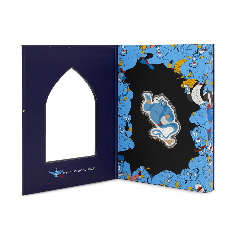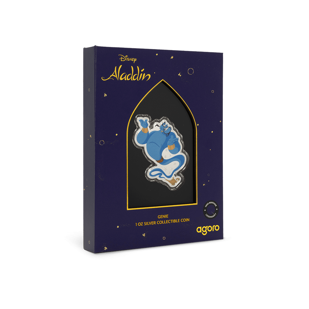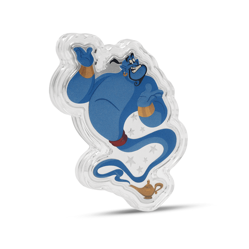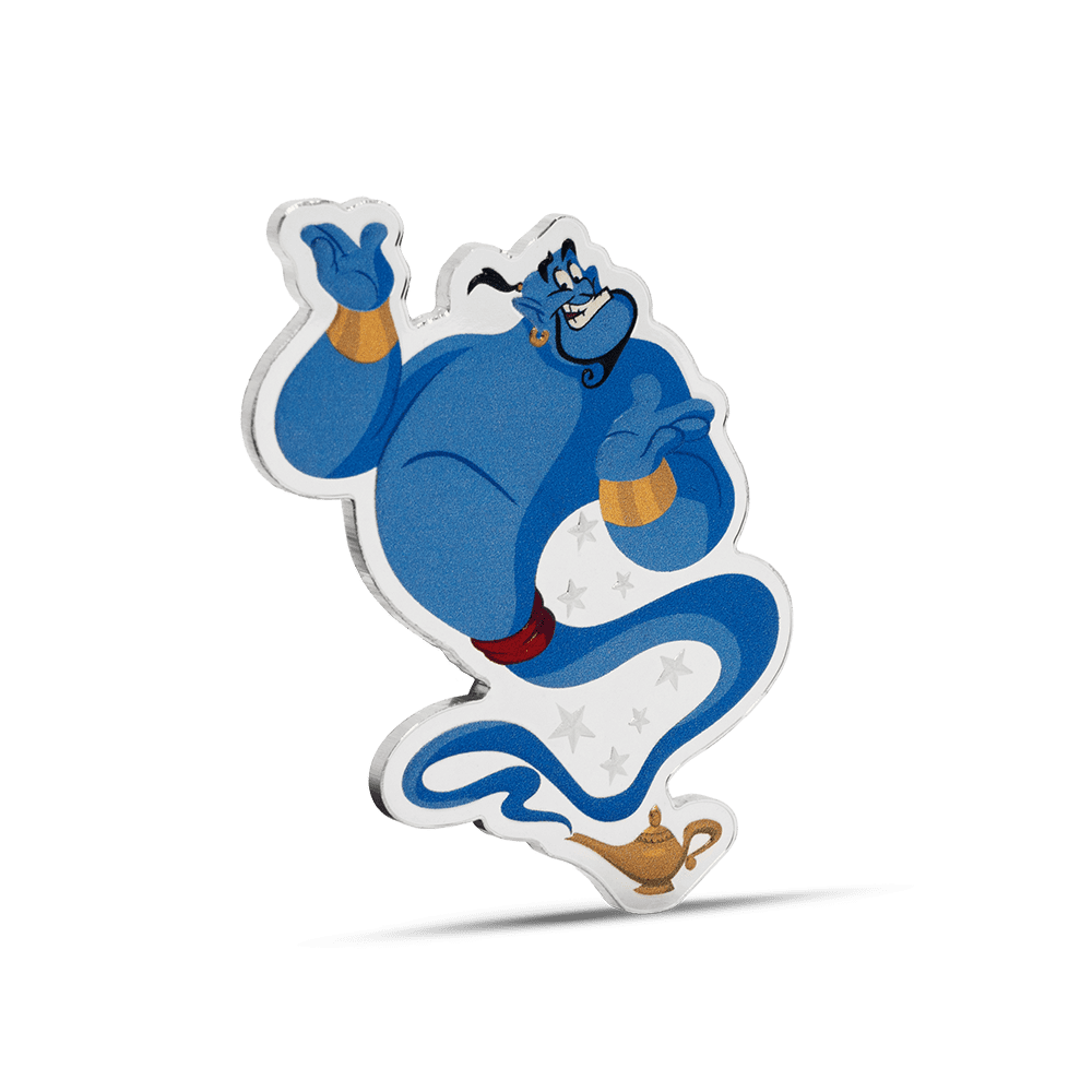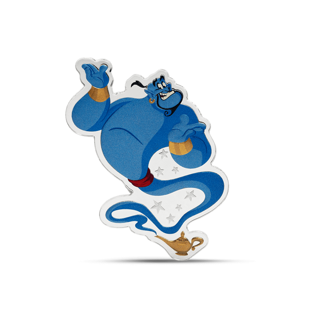 This vibrant $2 Aladdin collectable coin sparkles with 1oz of 999 fine silver, showcasing the beloved Genie in full-colour, lively cartoon style, just as seen in Disney’s classic adventure. Officially licensed and struck to premium proof finish, every coin is uniquely numbered and features the legal Public Seal of Niue on the obverse. The mintage is strictly limited to only 1000, making this Genie piece a highly sought-after Disney silver release for fans, collectors and gift-givers alike.