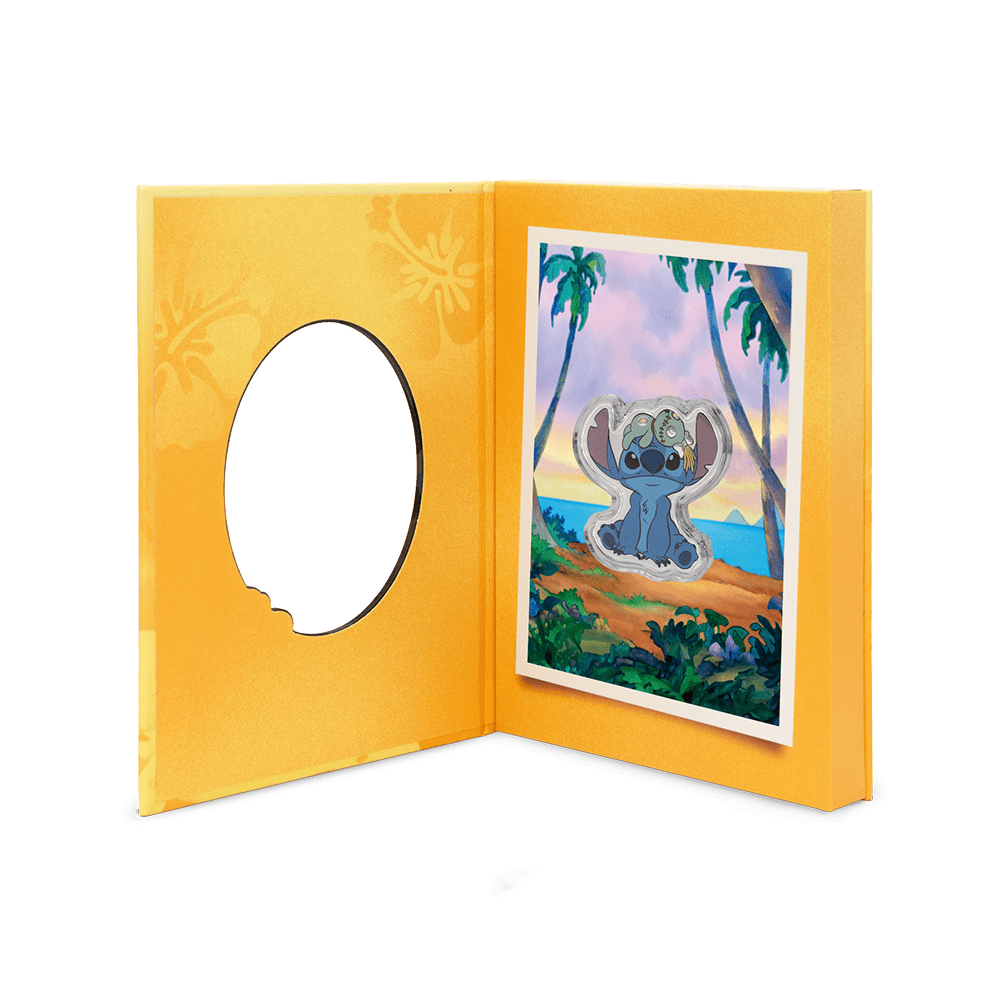 Celebrate Disney’s lovable alien with this eye-catching $2 silver proof coin, featuring Stitch playfully balancing Scrump atop his head. Expertly struck in 1oz of 999 pure silver and finished in full colour, every detail pops, from Scrump’s glossy bow to the mirror finish accents. With only 626 pieces minted worldwide, this limited collectible is a heart-warming tribute to Lilo & Stitch fans and silver coin enthusiasts alike.