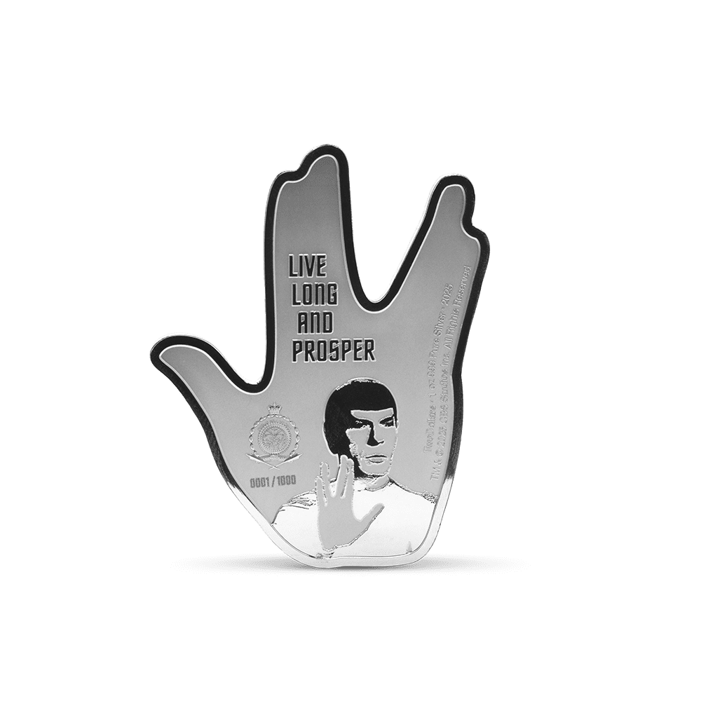 This beautifully crafted 2025 $2 Star Trek – The Vulcan Salute 1oz silver proof coin captures the iconic Vulcan salute in stunning detail on pure 999 silver. Featuring an official $2 denomination, sharp proof finish, and the famous Niue effigy on the obverse, this coin is a must-have for Star Trek enthusiasts and serious coin collectors alike. The bold Vulcan salute design pays tribute to legendary science fiction history, making it perfect for display or gifting.