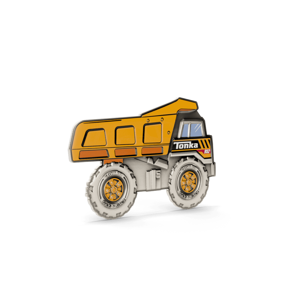 Recapture your love of Tonka with this $2 2026 silver proof coin, crafted in 1oz of 999 pure silver and officially licensed by Hasbro. The dump truck leaps off the coin with bold raised details and vibrant colour, giving collectors and Tonka fans an authentic hit of nostalgia. The unique rectangular coin displays the quintessential dump truck design, enhanced by premium proof finish—ready for pride of place in any silver or pop culture collection.