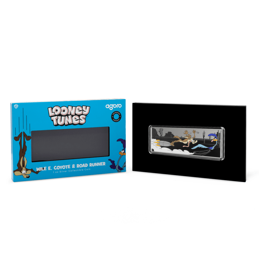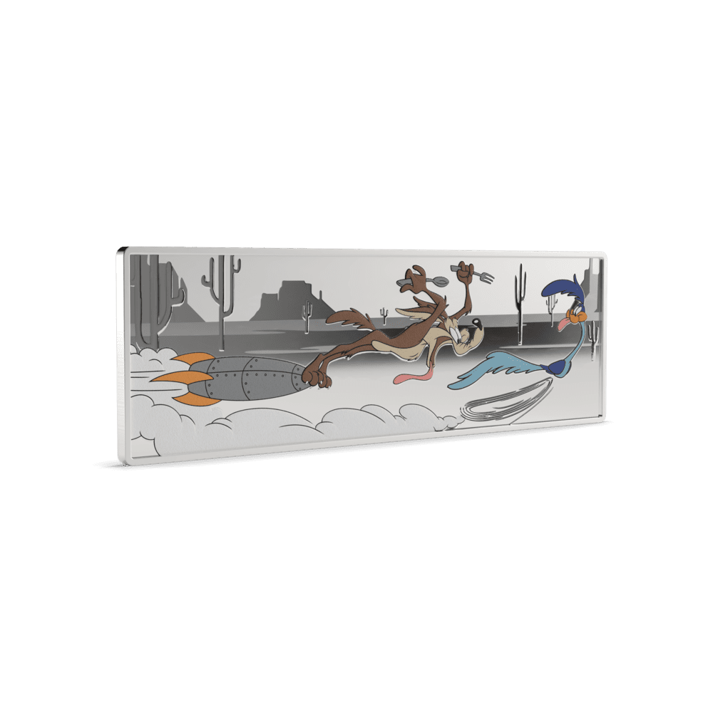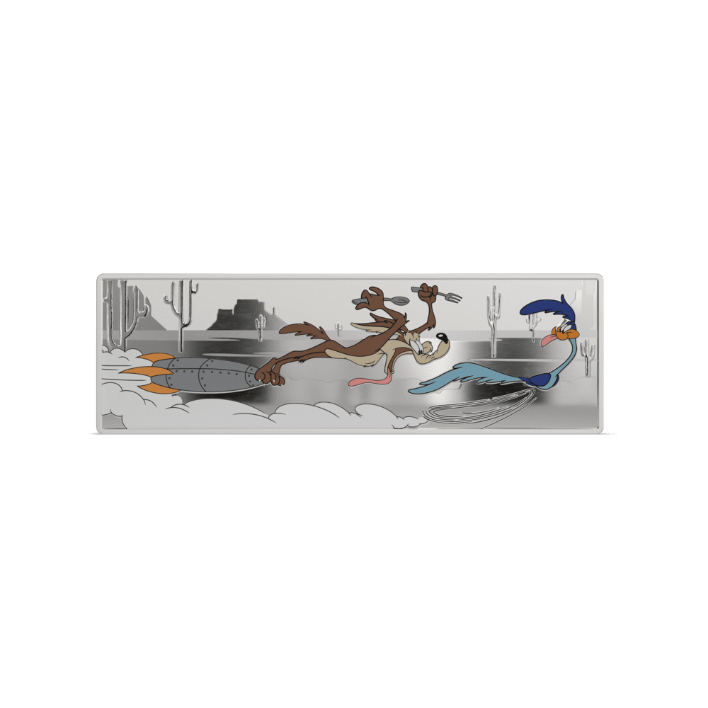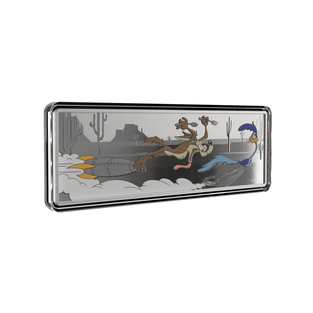 Bring the wild chase to your collection with this official 2025 $2 silver proof coin featuring Looney Tunes’ Wile E. Coyote and Road Runner. Struck from 1oz of 999 pure silver, the coin brilliantly captures the iconic high-speed pursuit in full colour, set against a frosted metallic silver desert. Carefully minted as legal tender by Niue and limited to just 1,000 worldwide, each coin carries its unique serial number and the Public Seal of Niue for authenticity.
