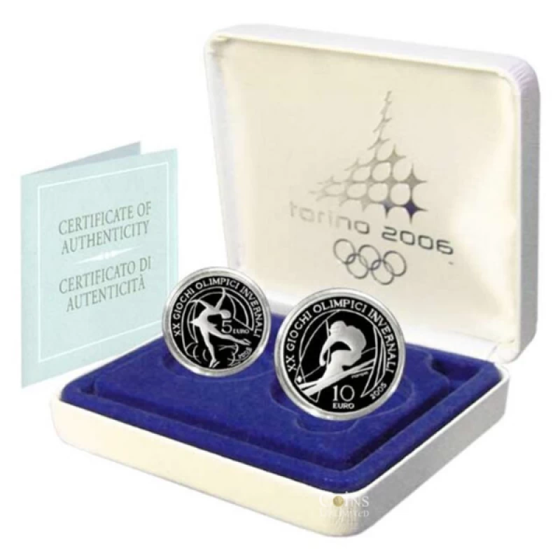 This captivating two-coin set honours the 2006 Torino Winter Olympics, expertly crafted in proof quality sterling silver. Featuring intricate designs, the $5 coin captures the elegance of figure skating, while the $10 coin showcases the thrill of alpine skiing. Both coins display the official XX Winter Olympics logo, national emblems, and the signatures of renowned Italian engravers—making this set a must-have for Olympic coin, sterling silver, and world coin collectors alike.