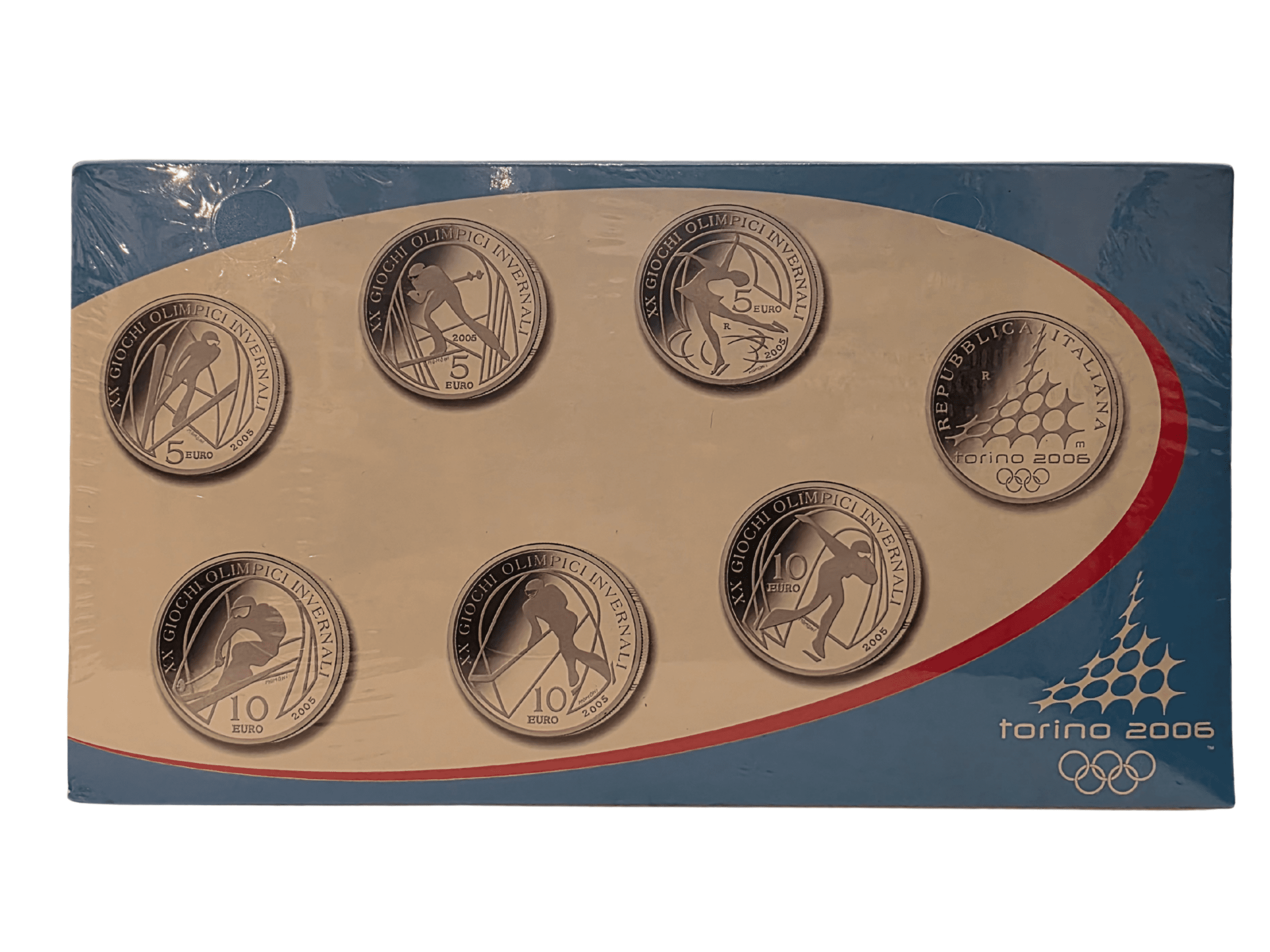 This stunning collection celebrates Italy’s Turin 2006 Winter Olympics with six official sterling silver coins, beautifully struck in proof finish. Each coin captures iconic winter sports—ski jumping, speed skating, cross country skiing, ice hockey, figure skating, and alpine skiing—making it a true showcase of Olympic spirit and artistry. Struck in 92.5 percent silver by the Italian Mint, these legal tender €5 and €10 pieces combine intricate designs with superb craftsmanship, perfect for both Olympic enthusiasts and world coin collectors.