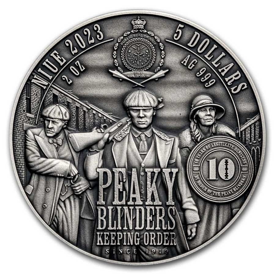 Embark on a journey back to the gritty and gripping streets of post-war Birmingham with the remarkable Thomas Shelby Silver Coin. Meticulously crafted to celebrate the 10th anniversary of the globally acclaimed series, Peaky Blinders, this 2oz silver coin is a must-have for both ardent fans of the series and serious collectors of unique numismatic pieces.