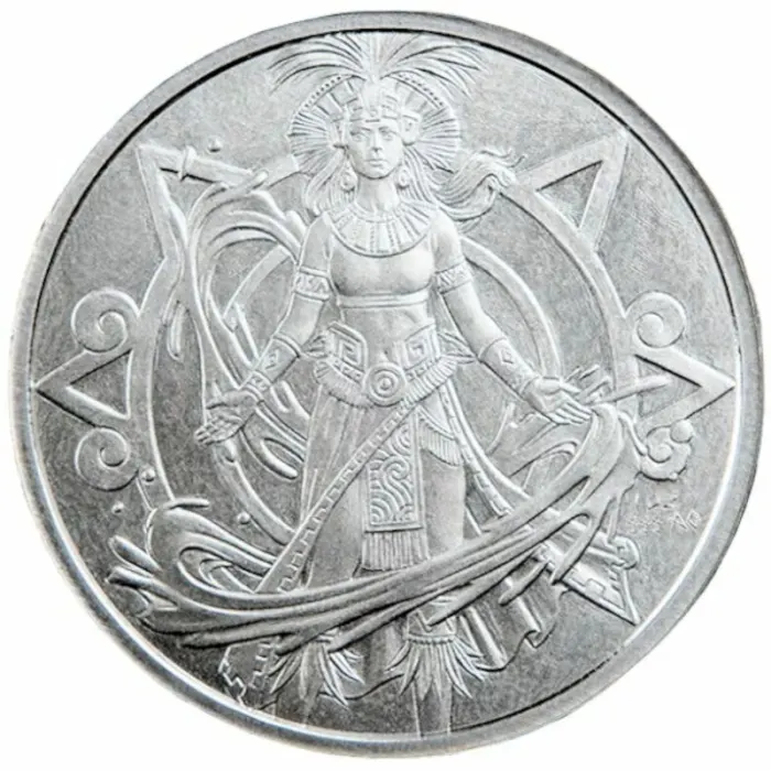 Discover the timeless allure of the Aztec Water Deity with this beautifully struck 1oz .999 fine silver BU round. Featuring the intricate image of Chalchiuhtlicue, the revered goddess of water in Aztec mythology, this silver round blends striking detail with the purity investors and collectors expect. The obverse highlights her flowing headdress and the life-giving streams, reflecting her powerful symbolism tied to fertility and water. Each round is expertly crafted from high-quality silver, ensuring it stands out in any coin collection or investment portfolio.