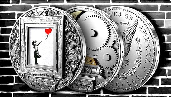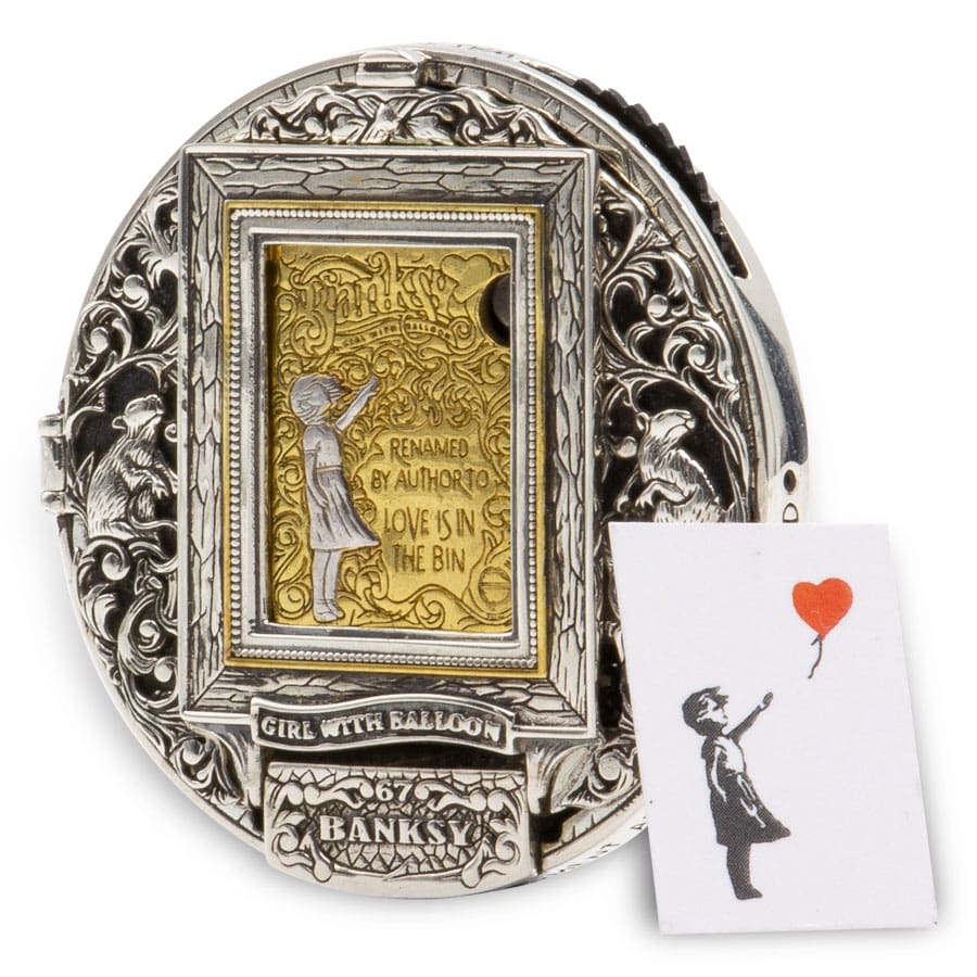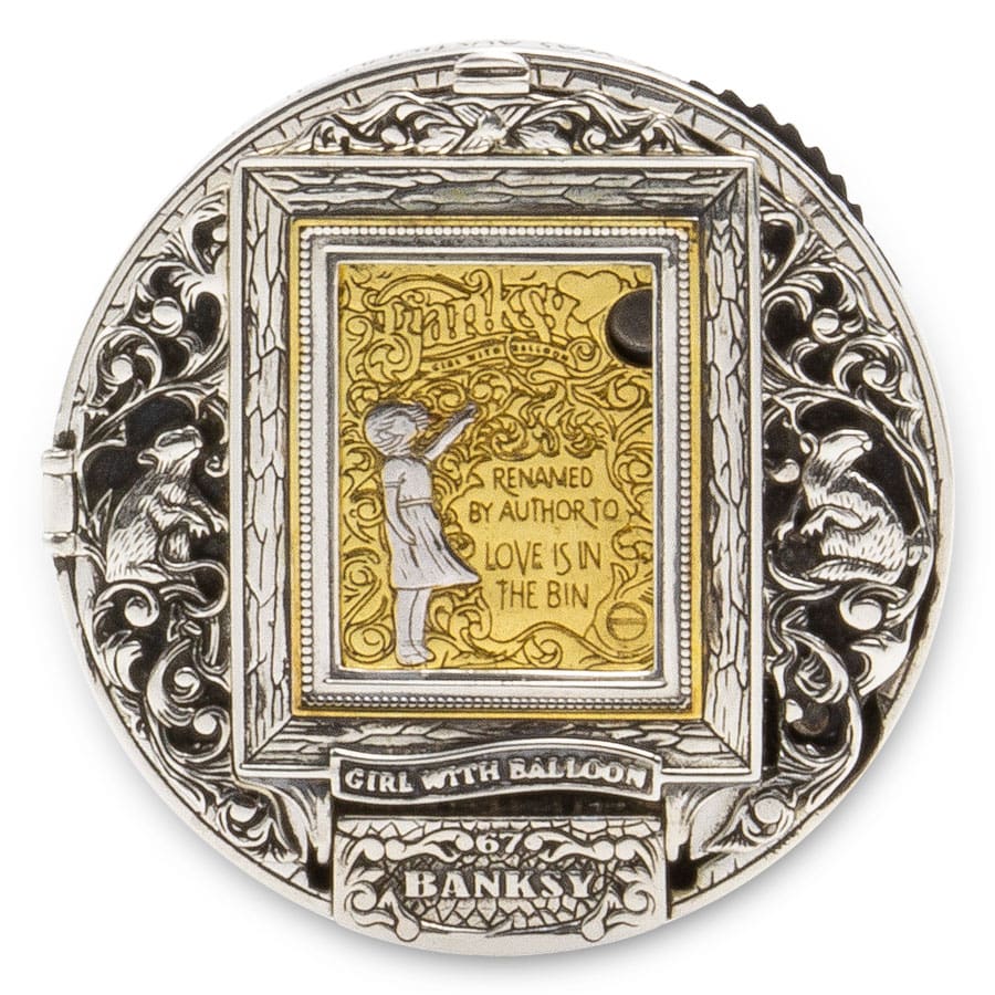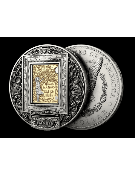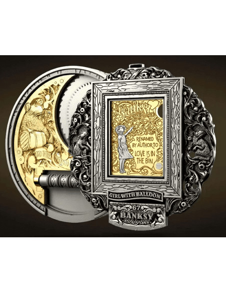 This stunning piece featuring an official Banksy authorised replica crafted from .999 fine silver and accented with a 1/10oz gold insert. This original Morgan dollar tribute captures attention with its antique finish, intricate mechanical gears, hidden features, and impressive articulated relief, all inspired by Banksy’s famed shredding artwork. With only 999 pieces minted globally in 2023, each coin arrives in a presentation case, serialised and certified for authenticity—perfect for collectors seeking rarity and artistry in one striking release.