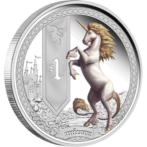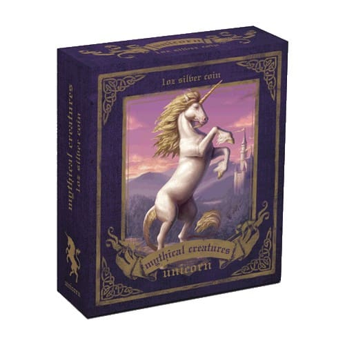 Immerse yourself in the rich world of European folklore with this finely detailed $1 silver proof coin, the third release from the highly collectible 2013 Mythical Creatures Series. The unicorn, elegantly minted by The Perth Mint in 1oz of 99.9% pure silver, is presented in spectacular proof finish. Its mesmerising design captures the legendary creature’s grace, with intricate features like its spiralling horn, flowing mane and distinctive, mythic look, making this coin a standout for collectors and investors alike.