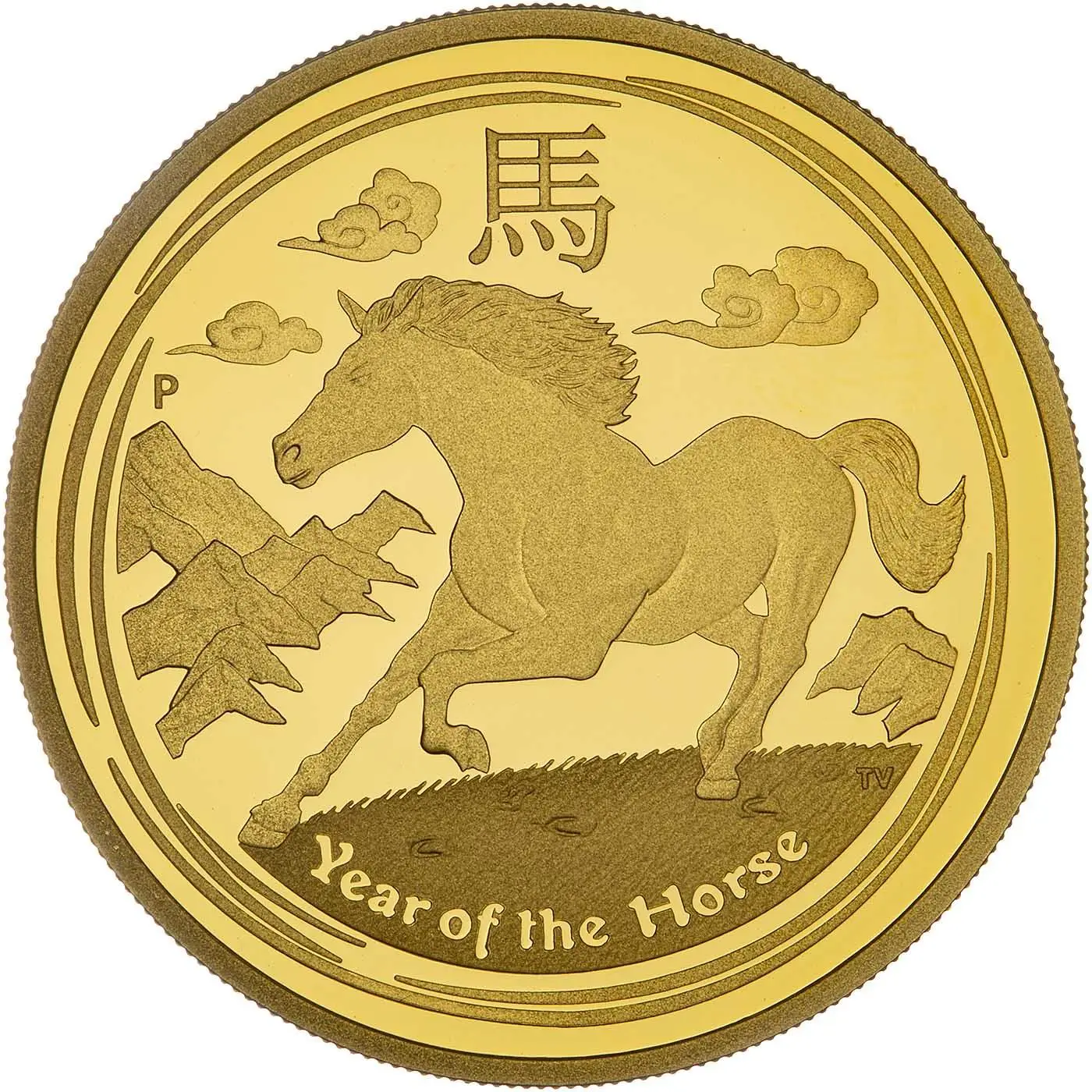 Immerse yourself in the elegance of the 2014 1oz Gold Year of the Horse Proof Coin, a highly sought-after gold proof struck from 9999 fine gold by the famed Perth Mint. Showcasing a powerful horse galloping amidst mountain scenery, this limited mintage 1oz collector’s coin beautifully embraces the spirit and energy of the Chinese lunar calendar. The renowned proof finish delivers breathtaking detail, while the obverse features the distinguished Ian Rank-Broadley portrait of Queen Elizabeth II with clear inscriptions.