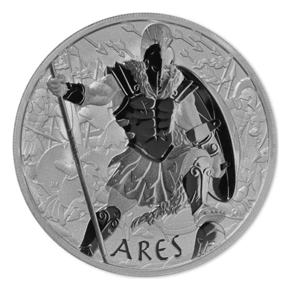 Perfect for collectors and mythology enthusiasts alike, this 2023 release showcases Ares, the Greek God of War, powerfully engraved in 5oz of 9999 pure silver. Struck by The Perth Mint for Tuvalu, the coin gleams in brilliant uncirculated finish, vividly capturing Ares in battle with full armour and shield. With a strictly limited mintage of only 450 pieces, this collectable is both rare and highly sought after in the Gods of Olympus series, making it a smart addition to any silver or ancient mythology coin collection.