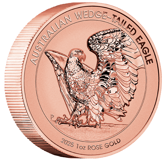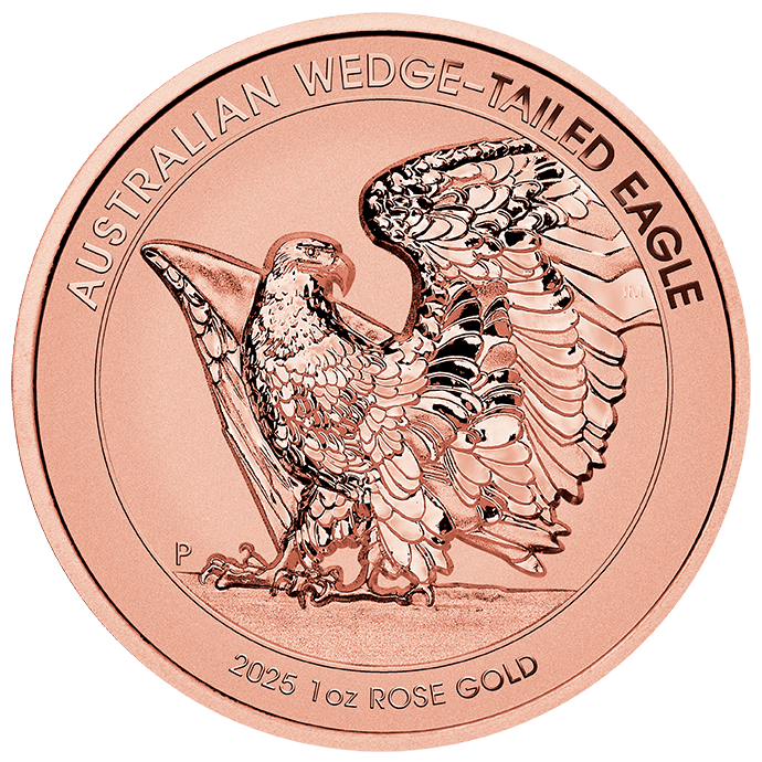 Celebrate Australia’s majestic wedge-tailed eagle with this 2025 $100 1oz rose gold reverse proof coin, a standout from The Perth Mint. Crafted in 91.67 percent pure rose gold and struck in ultra high relief, this collector’s piece captures the powerful stance and outstretched wings of the iconic eagle, designed by legendary engraver John M. Mercanti.