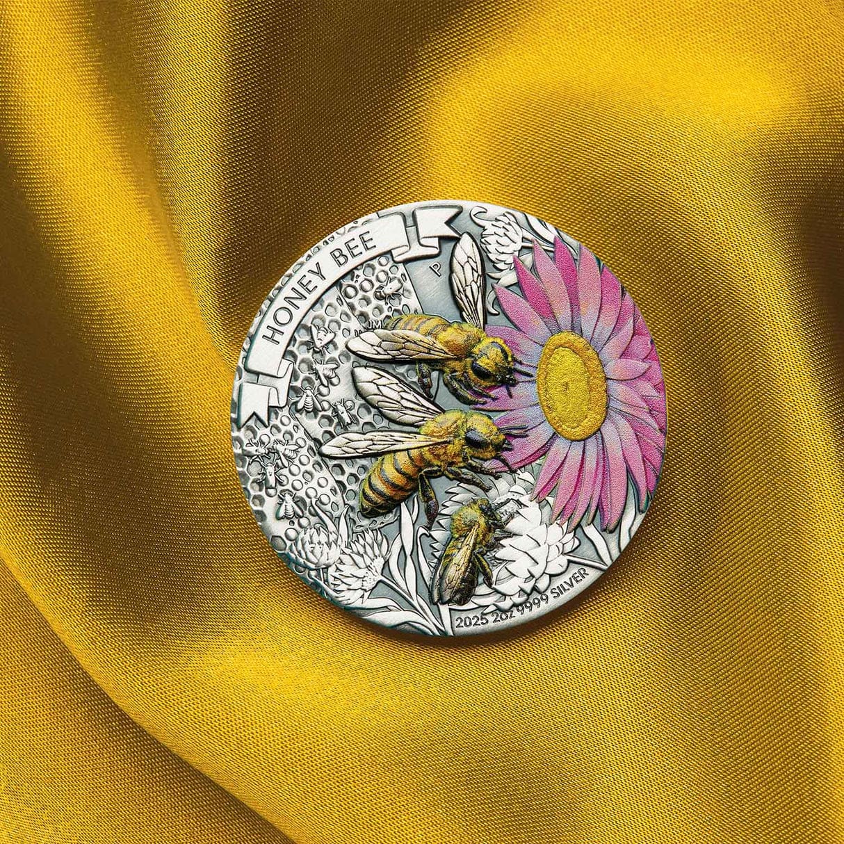 Celebrate Australia’s vibrant wildlife with this highly detailed 2025 Honey Bee coin, struck from 2oz pure silver and featuring exquisite coloured antiqued finishes. The design brings the iconic honey bee to life, set against Australian floral motifs, making it a compelling choice for collectors who value nature-themed coins with artistic flair. With low mintage and top-notch quality, this coin reflects exceptional craftsmanship while highlighting precious metal value and stunning visual appeal.