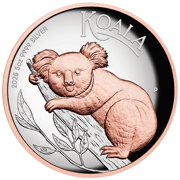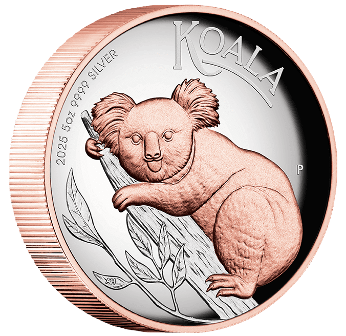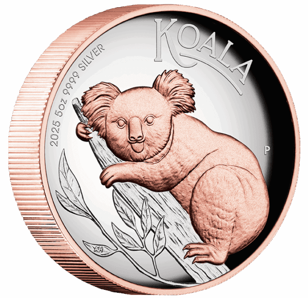 Fall in love with the 2025 $8 Australian Koala 5oz Silver Proof High Relief Gilded Coin, a stunning collector’s piece from The Perth Mint. Struck from 99.99% silver and displaying exceptional high relief detail, this coin captures the iconic koala cradling a eucalyptus tree, its plush fur highlighted with striking 22-carat pink gold gilding. Limited to a worldwide mintage of 750, every 5oz coin comes displayed in a classic Black Perth Mint case with a clear lid, accompanied by a numbered certificate of authenticity.