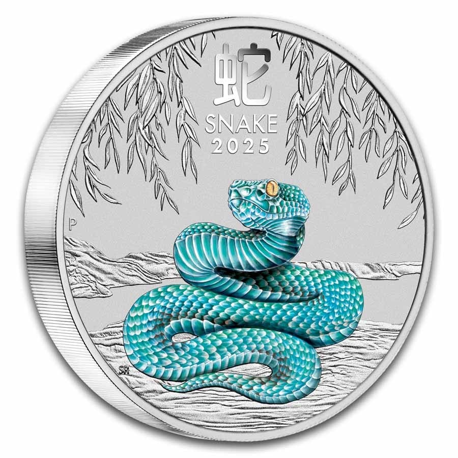 Step into the world of premium collectables with this 2025 Australia 1 kilo silver coin, brilliantly crafted by The Perth Mint to honour the Year of the Snake. Struck from .9999 fine silver and finished with vibrant colourisation, this Series III release presents a stunning snake weaving through bamboo, with intricate Chinese motifs and a distinguished effigy of King Charles III on the obverse. The coin’s substantial 1 kilo weight, its lavish colour details, and a strictly limited mintage of just 2,000 make it highly sought-after among silver bullion and lunar coin enthusiasts alike.