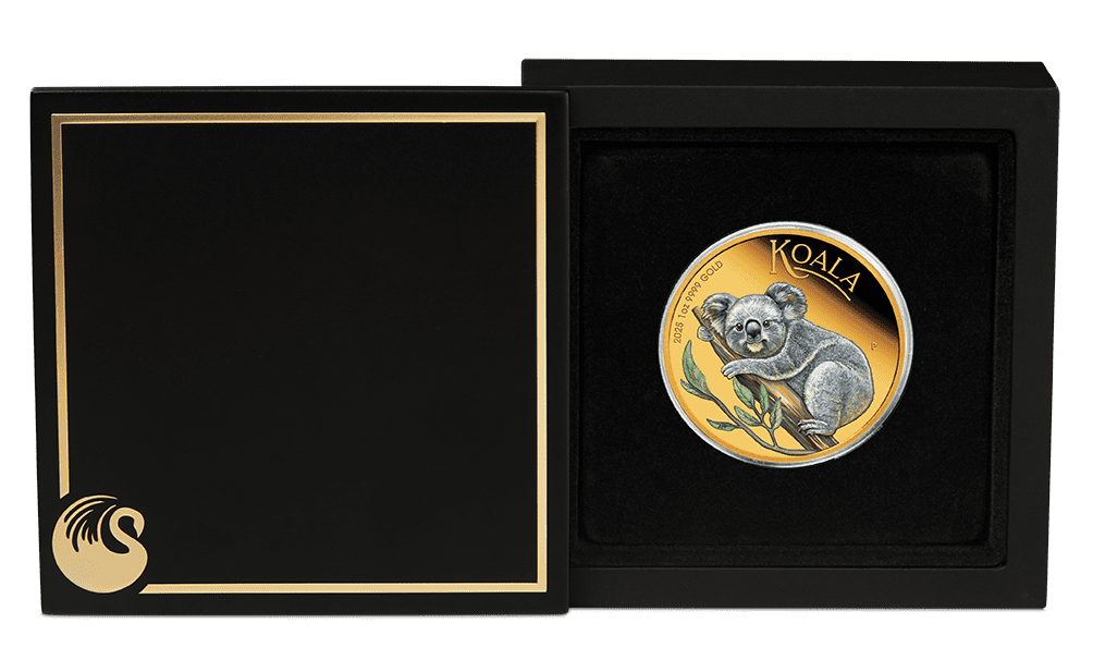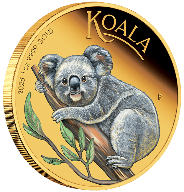 Experience the exquisite artistry of the 2025 $50 Australian Koala 1/2oz Gold Proof Coin, a dazzling tribute to the nation’s iconic wildlife. Struck by The Perth Mint in 99.99 percent pure gold, this proof coin beautifully showcases a gentle koala clutching a eucalyptus tree, highlighted with intricate detail and a mirror-like finish. The coin includes the Perth Mint’s distinctive ‘P’ mintmark, the 2025 year-date and all official markings, with a limited mintage that enhances its collectability for coin enthusiasts and investors alike.