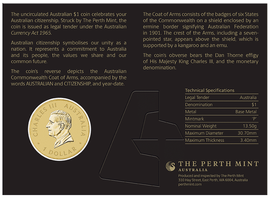 This collectable coin, issued as legal tender, is presented on a vibrant card and serves as a timeless memento of a new chapter in your Australian journey. Crafted in durable base metal, it’s perfect for citizenship ceremonies, keepsake collections, or as a thoughtful present. With its captivating design, rich symbolism and broad appeal, the 2026 $1 Australian Citizenship Carded Coin is a must-have for every proud Aussie or supporter of Australia’s multicultural heritage.