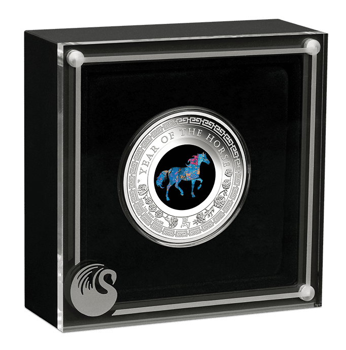 This highly sought-after lunar coin boasts a strictly limited mintage, ensuring rarity and desirability. Struck from one troy ounce of fine silver and showcasing the effigy of His Majesty King Charles III on the obverse, each piece is authentically Australian and perfectly embodies both tradition and artistry. Elevate your collection or gift a meaningful keepsake with the allure and opulence of the celebrated Year of the Horse silver proof coin from Perth Mint’s Lunar Opal Series, available now from The Coin Chest.