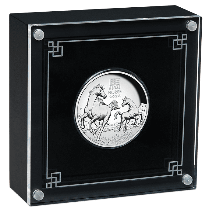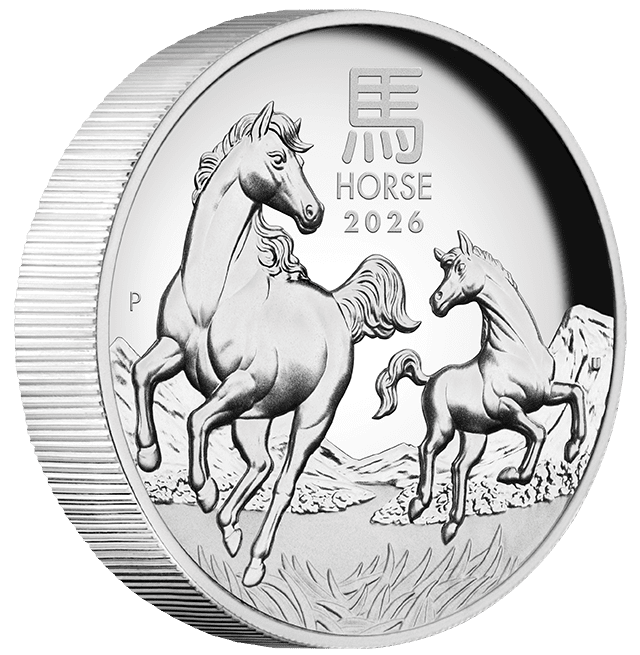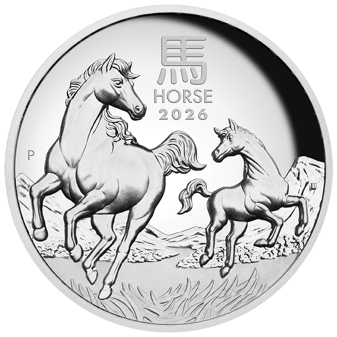 Celebrate the spirit of the 2026 Year of the Horse with this stunning $1 lunar silver coin, expertly crafted in 99.99 percent pure silver and struck in high relief by The Perth Mint. The coin’s detailed design features a graceful mare and foal mid-gallop, set against mountain scenery and native grasslands, beautifully capturing the free-spirited energy and resilience the lunar horse symbolises. The shimmering silver proof finish and the concave high relief strike bring every detail and texture to life, making this a highlight for Australian coin collectors and Lunar Series enthusiasts alike.