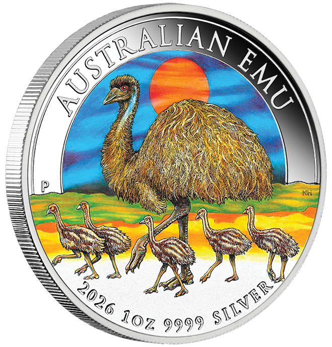 This beautifully coloured 2026 silver coin from the respected Perth Mint captures the essence of the legendary Australian emu. Showcasing a detailed adult emu alongside five curious chicks, the design pops with an outback landscape and a warm orange sun, all set against a 1oz 99.99% pure silver backing. Collectors and gift-seekers alike will appreciate the coin’s exclusive mintage, with only 2,500 produced, making it a treasured addition to any collection.
