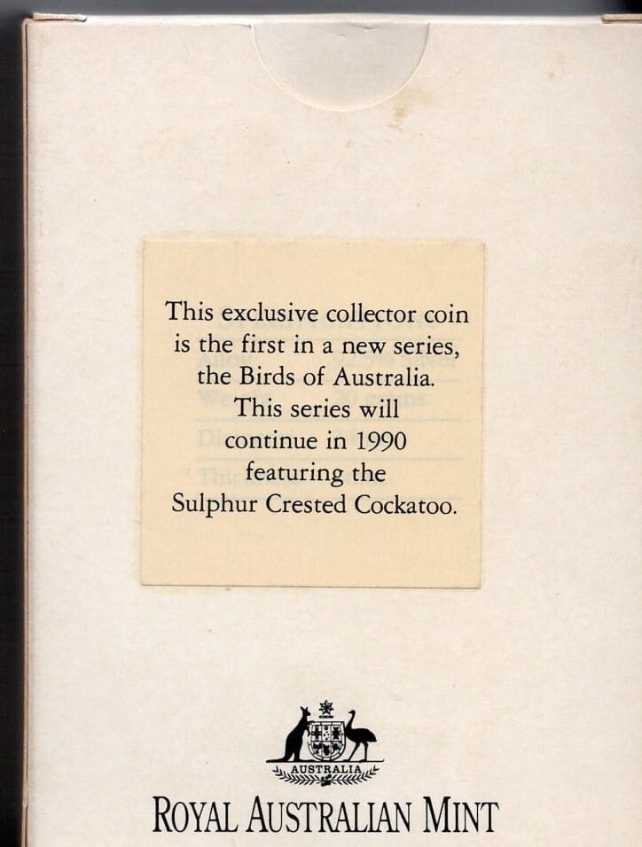 Step into the rich artistry of Australian coinage with this 1989 $10 Kookaburra silver proof, beautifully crafted by the Royal Australian Mint. A stunning depiction of the iconic kookaburra sits on the reverse, capturing the unique spirit of the Birds of Australia series. Struck in fine silver, this legal tender coin boasts a mirror-like proof finish, highlighting its detailed design and crisp edges. Collectors and wildlife enthusiasts alike adore its limited mintage, making it a sought-after gem for any collection.