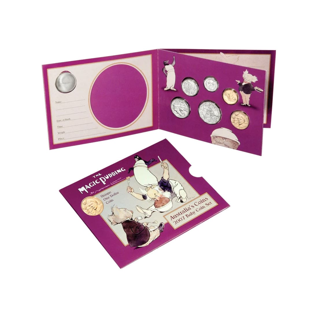 This 2007 mint set features a Magic Pudding medallion with a blank reverse, ready to be custom-engraved for a personal touch. These baby sets make thoughtful gifts for proud parents seeking a unique memento. Each set captures the nostalgia of childhood and collectible coin heritage, all in charming packaging created with collectors and families in mind.