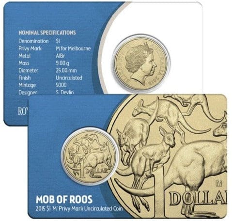 Created by the Royal Australian Mint for the Melbourne ANDA Show, this $1 coin showcases the legendary ‘Mob of Roos’ kangaroo design, struck with a distinct ‘M’ privymark. With a limited mintage of 5,000 and crisp details, this 2015 $1 piece is sought-after for its connection to the ANDA show and its classic Mob of Roos design.