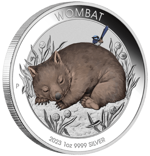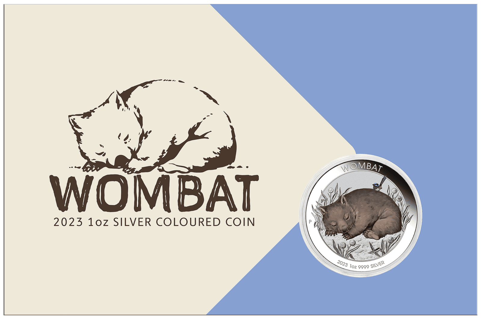 This stunning 2023 $1 Wombat coin showcases a charming, coloured design featuring a wombat resting among vibrant billy buttons, with a delicate blue fairywren perched gently on its back. Struck from 1oz of pure silver and presented in a visually appealing card, this Australian legal tender coin is a collector’s favourite, admired for its fine detail and tribute to native fauna. The Perth Mint has issued this limited mintage gem, ensuring both lasting value and unique appeal for enthusiasts of Australian wildlife coins.