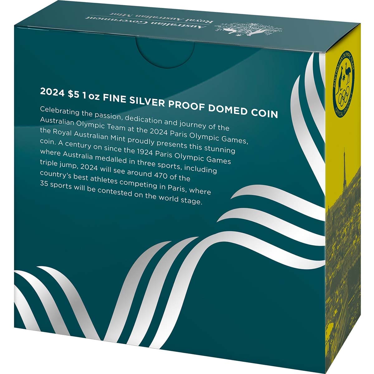 Embrace the excitement of the Paris Olympic Games with the 2024 Australian Olympic Team 1oz silver proof coin. Featuring a striking domed design that captures the momentum and dreams of our national athletes. With its elegant proof finish and an official mintage authorised by the Royal Australian Mint, this $5 silver coin stands as a tribute to both craftsmanship and sporting dedication.