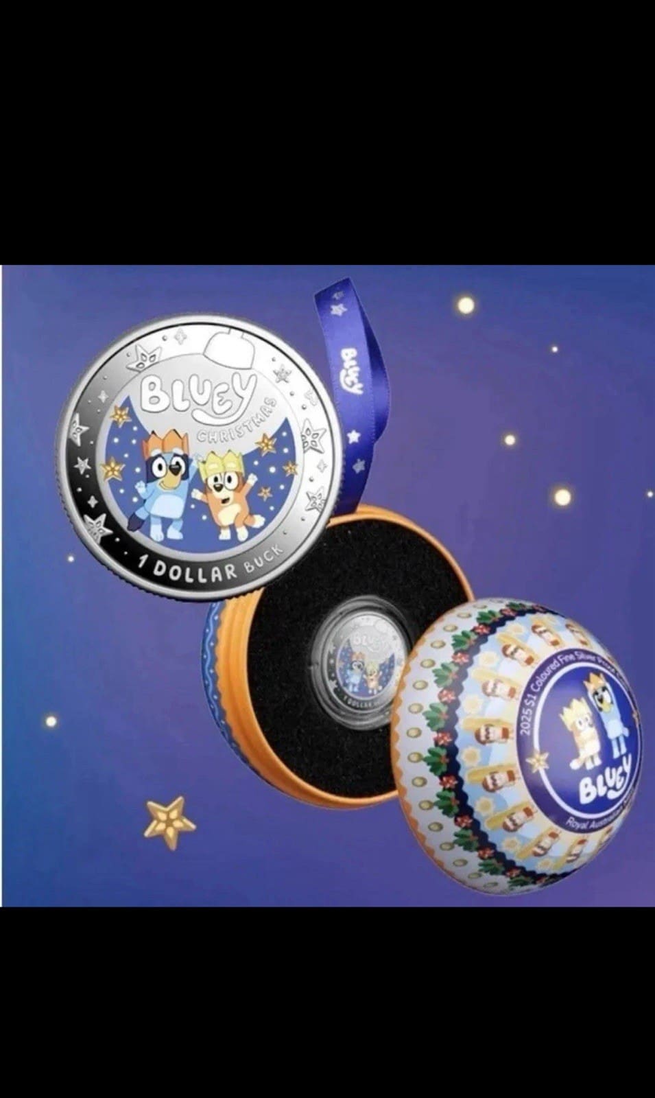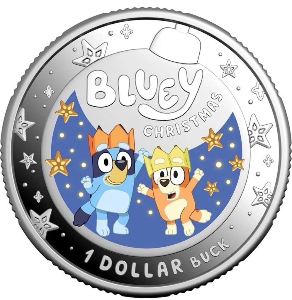 Welcome the festive spirit with this 2025 $1 Bluey Christmas coloured fine silver proof coin, featuring beloved Bluey and friends celebrating a joyful holiday scene. Struck by the Royal Australian Mint, this delightful collectable is crafted in brilliant 99.9% fine silver and finished with crisp proof detail and vibrant colour. The Bluey Christmas design, highlighted in gorgeous hues, makes it a standout keepsake for both younger fans and dedicated collectors alike.