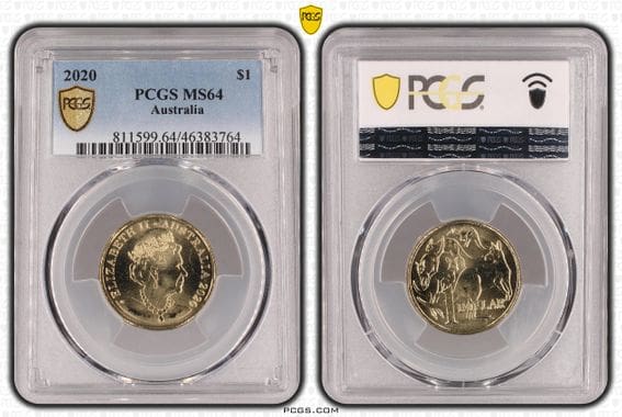 Embrace a piece of Australian history with this stunning 2020 $1 Mob of Roos coin, graded MS64 by PCGS. Showcasing the iconic kangaroo mob design, this legal tender coin shines with crisp detail and lustrous finish, making it highly sought after by collectors and investors alike. With its PCGS certification, authenticity and condition are guaranteed, providing confidence whether you’re expanding your collection or seeking investment-grade Australian coins.
