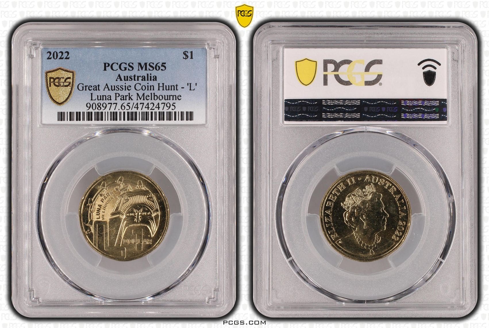 Buy the MS65 2022 Great Aussie Coin Hunt “L” – Lunar Park coin, officially graded by PCGS. A scarce, high-grade collectible celebrating one of Australia’s most iconic landmarks. Ideal for serious collectors and investors alike.