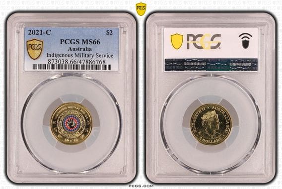 Unearth a piece of Australia’s proud story with this 2021 $2 Indigenous Military Service colourised coin, professionally graded MS66 by PCGS and featuring vivid colour detailing to honour Indigenous servicemen and women. Struck by the Royal Australian Mint, this circulating collectible captures the spirit of remembrance with striking imagery set against the iconic $2 design. Encased in a PCGS Gold Shield slab for unrivalled protection and NFC security, this sought-after coin boasts a low mintage and a highly collectible finish—making it an outstanding addition for dedicated collectors and passionate newcomers alike.