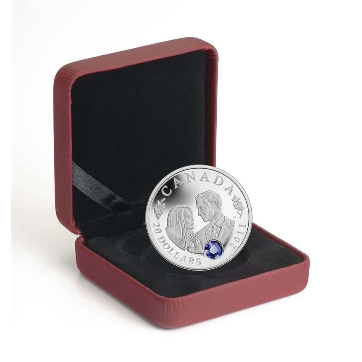 This limited edition collectable captures the unforgettable 2011 royal wedding of Prince William and Catherine Middleton. Struck in pure silver, the $20 coin showcases a radiant sapphire-blue Swarovski crystal, reminiscent of Catherine’s iconic engagement ring. A beautifully detailed portrait of the couple, framed by maple leaves and a Tudor rose, honours their union and heritage. Mintage is strictly limited to just 25,000 coins, enhancing its collectability and value.