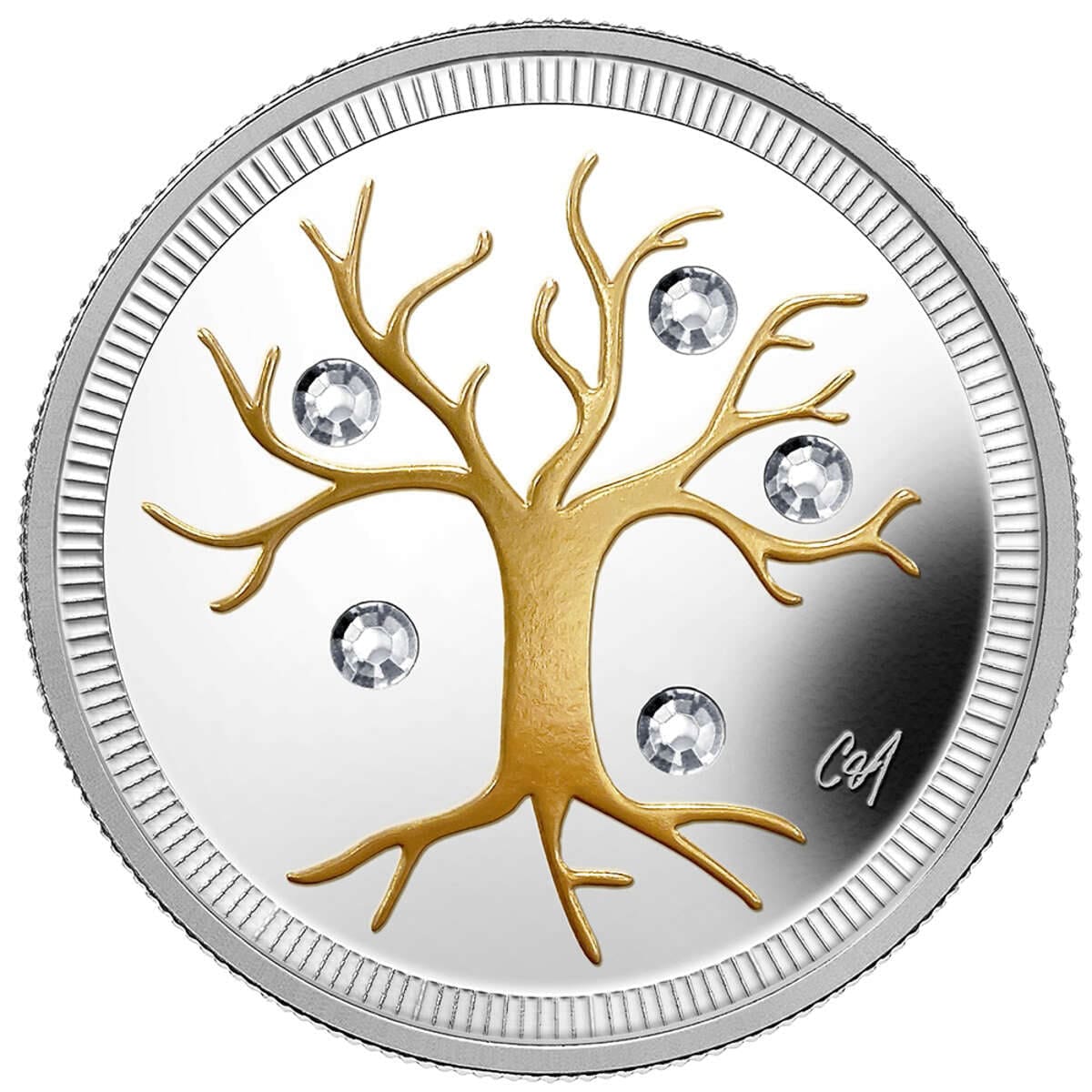 Celebrate exquisite craftsmanship with this 2014 $3 Jewel of Life coin struck in 1/4oz fine silver by the Royal Canadian Mint. This collectable dazzles with its unique design, featuring the gold-plated silhouette of a winter tree accented by sparkling Swarovski crystals, capturing the elegance of snow-laden branches. With a limited mintage of only 15,000, this piece is both a rare treasure and a tribute to Canadian culture, blending fine silver and creative jewellery aesthetics for maximum visual appeal.