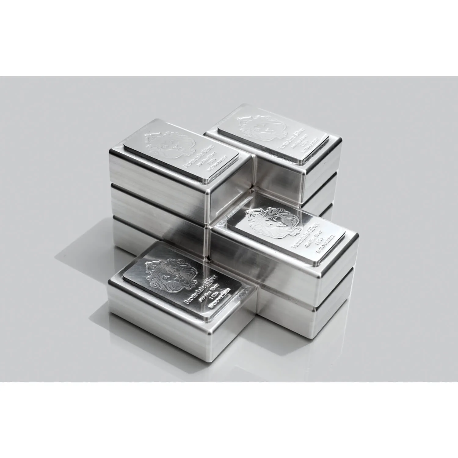 Experience true value and security with the sought-after Scottsdale Mint Stacker Kilo Bar, crafted from .999 fine silver. A perfect blend of solid weight and innovative stacking design, each kilo silver bar boasts a precision-applied logo and is engineered for seamless, stable stacking—ideal for bulk silver storage and impressive displays. The flat, smooth surfaces and crisp, raised edges provide a tactile feel that appeals to both seasoned investors and passionate collectors.