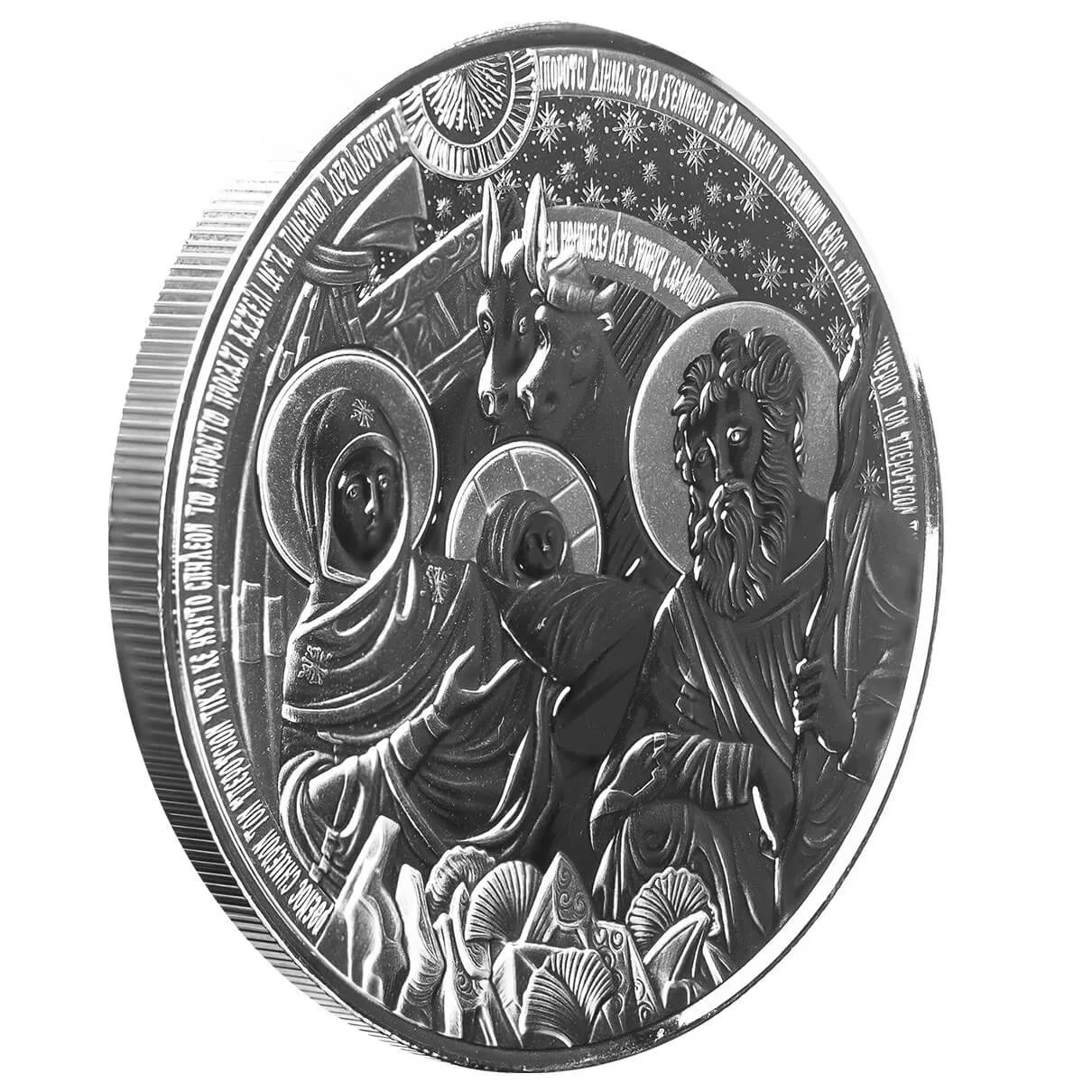 Unwrap the story of Christmas with the beautifully designed Bethlehem Nativity 5oz Silver Round, a precious collectible that captures the iconic nativity scene in stunning detail. Struck from pure silver with a visually captivating finish, this substantial coin makes the perfect centrepiece for any festive or faith-based collection. Depicting the holy family beneath the Christmas star, each round reflects exquisite artistry and meaningful symbolism, making it a timeless keepsake to treasure or gift.