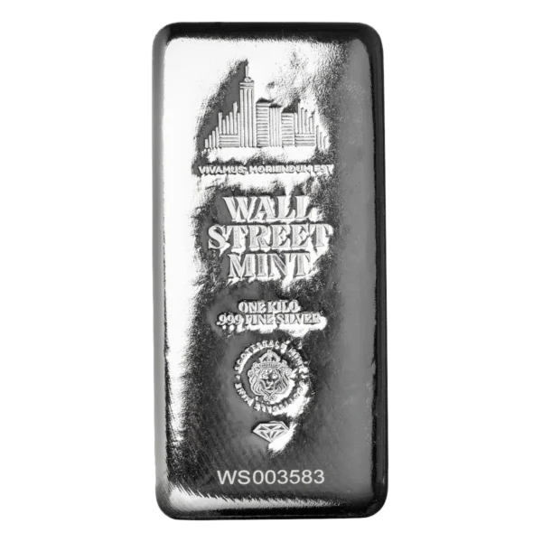 Boost your collection or investment portfolio with the renowned Wall Street Mint 1kg Silver Bar, a standout due to its impressive heft and highly regarded .999 fine silver purity. Every bar features the iconic Wall Street Mint branding, an intricate skyscraper cityscape, and distinct serial numbers on a solid finish, making it both a statement piece and a highly sought-after asset for collectors and investors alike. Feel the confidence of owning a 1kg silver bar with guaranteed authenticity and trusted metal content, perfect for storing wealth or gifting with a touch of sophistication.
