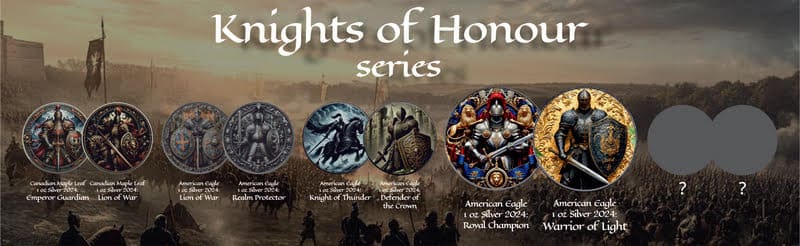 The Coin Chest presents the 2024 Warrior of Light 1oz Silver USA Coin — the 8th release in the Knights of Honour series. Featuring a majestic American Eagle motif, this 1 dollar silver coin channels themes of courage, freedom, and virtue. Struck in brilliant uncirculated quality from 999 fine silver, its bold 40.6mm design and limited 300 mintage make it a standout collectible in any numismatic lineup.